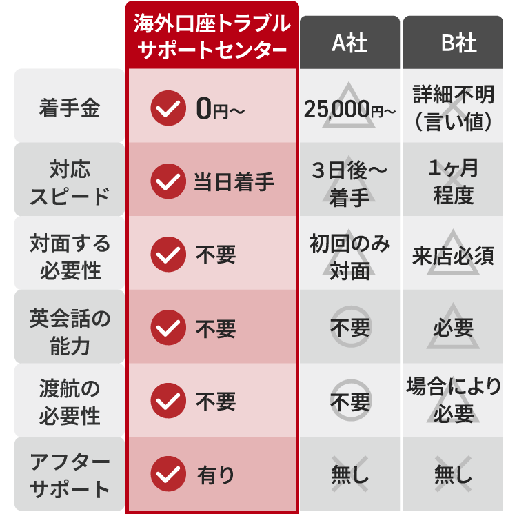 海外口座トラブルサポートセンターが選ばれる理由